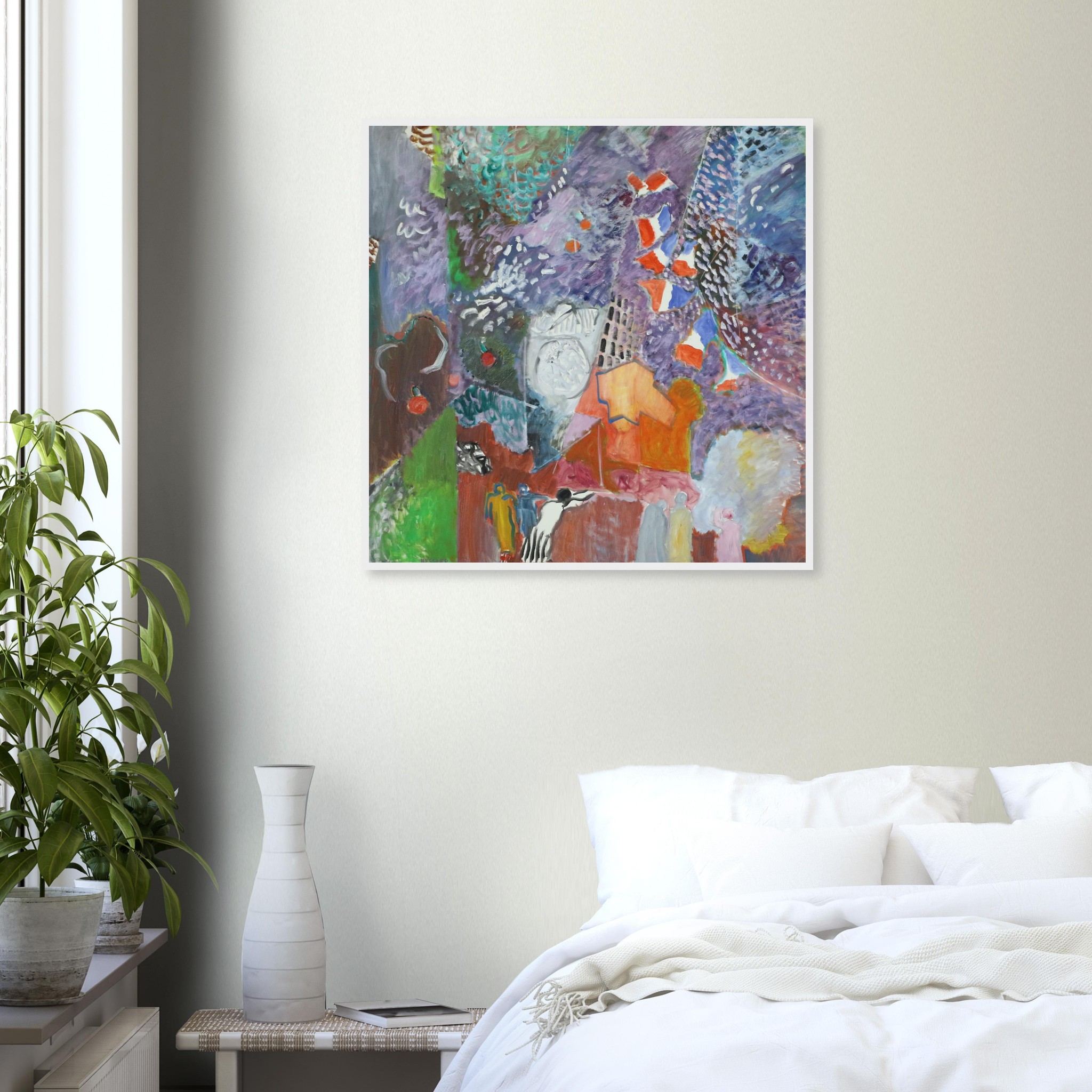 This reproduction of an oil painting on canvas by Janine Nessler is printed on uncoated matte paper and framed in a beautiful wooden frame, Delivered ready to hang on the wall of your choice.